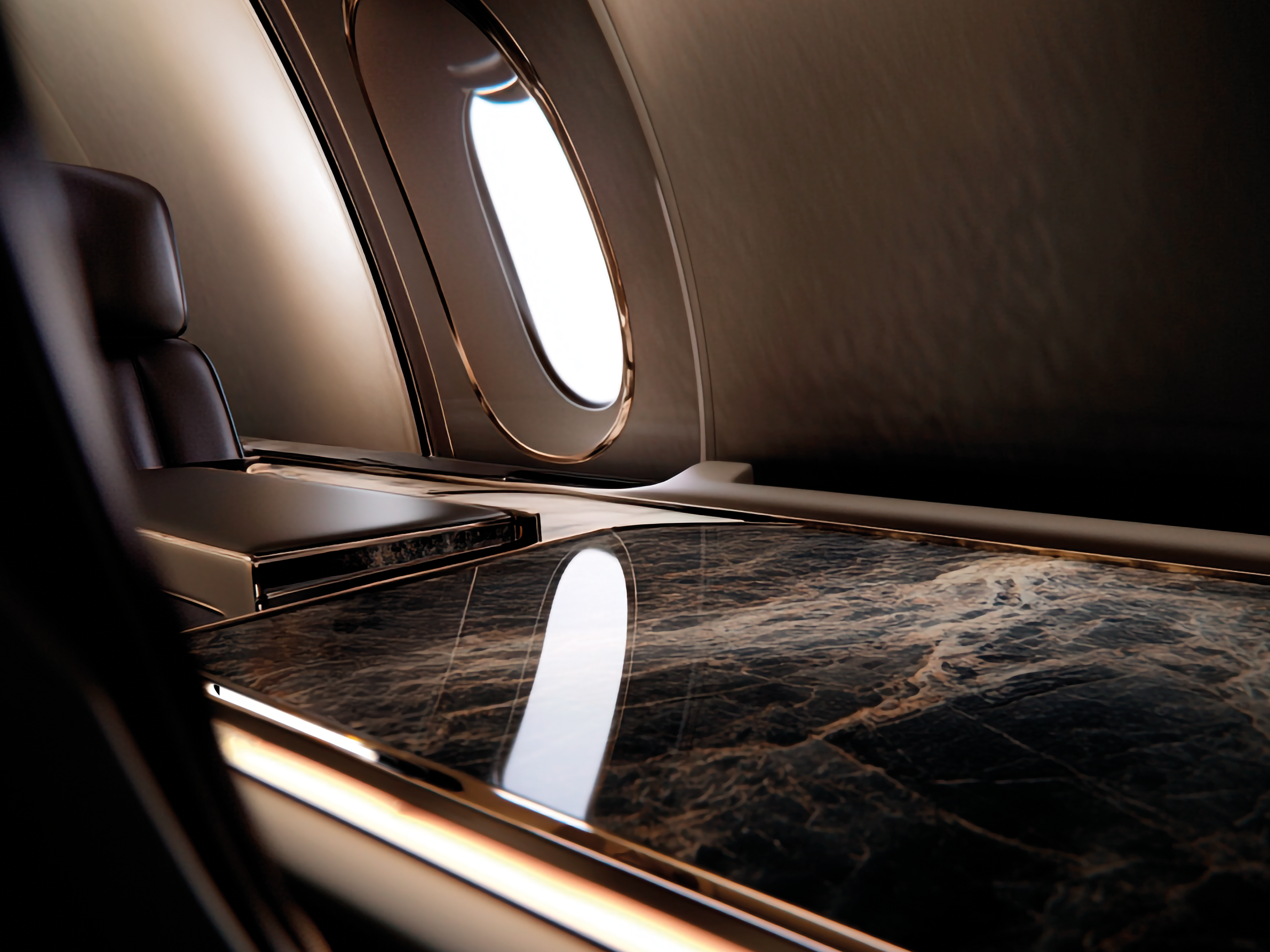 F/LIST montre comment la pierre véritable peut être intégrée dans des applications légères, performantes et au design raffiné pour des cabines haut de gamme.